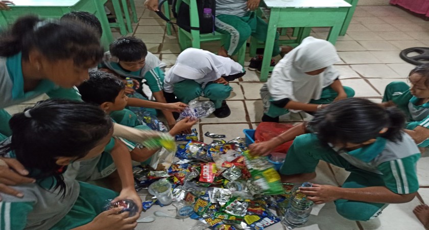 Dari hasil botol ini kemudian dijadikan kembali sebagai wadah pot bunga. Dari kegiatan ini, kita menjadi paham bahwa sampah anorganik dapat diolah kembali menjadi barang yang bernilai guna.